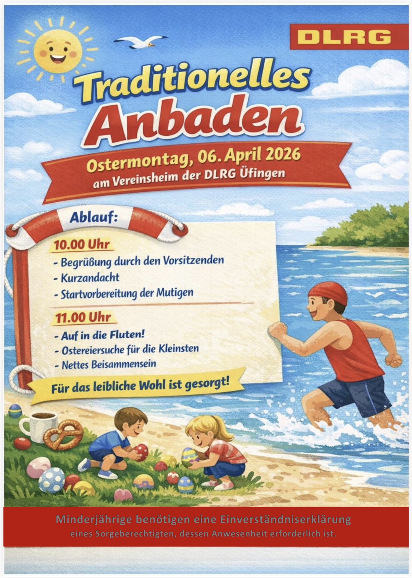 Bitte beachten, das Kinder nur mit unterzeichneter Erlaubnis ins Wasser dürfen.