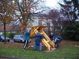 Hier die Bilder vom Bau und Austellen der Ortseingangsschilder.